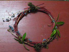 Wir flechten mit bunter Weide und dem Kreuzgeflecht verschieden große und kleine Futterreusen für die Vogelfutter-Station. Sie können sie für Maisenknödel oder auch für Streufutter verwenden und sind sehr dekorativ für Balkon oder Garten.